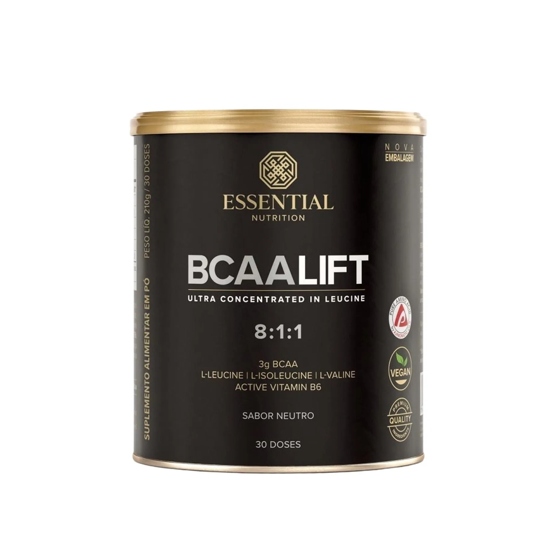BCAA Lift 8:1:1 Suplemento que combina os aminoácidos de cadeia ramificada — conhecidos como BCAAs —, com a vitamina B6 em sua forma ativa. Sua formulação foi desenvolvida respeitando a proporção de 8:1:1, ou seja, 8 partes de L-leucina para 1 parte de L-isoleucina e 1 parte de L-valina. Os BCAAs representam cerca de 35% dos aminoácidos presentes nas proteínas musculares, sendo a Leucina o que tem maior destaque, por seu papel-chave em vias bioquímicas específicas. Vitamina B6 como cofator para uma ação mais eficiente O BCAA é altamente dependente da Vitamina B6 para poder exercer sua ação. Por isso, BCAA lift 8:1:1 combina Vitamina B6 na sua forma ativa (piridoxal-5-fosfato) para um resultado ainda mais eficiente.