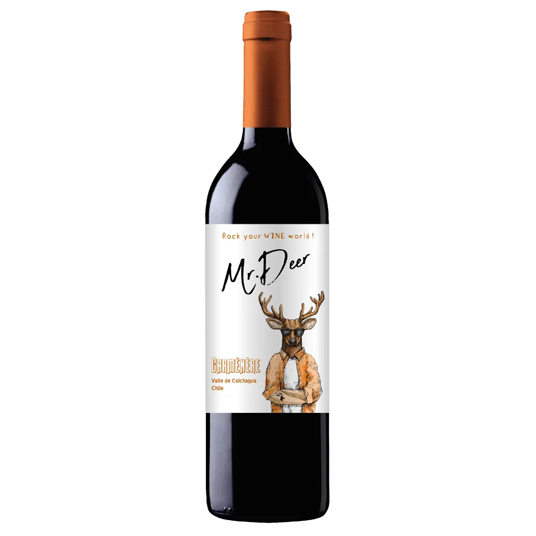 O rótulo Mr. Deer carménère apresenta a coloração rubi, com deliciosos aromas de frutas vermelhas e pretas como ameixas e framboesas,